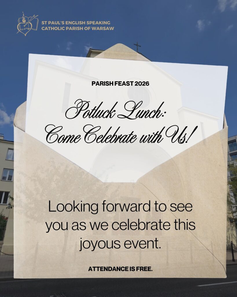 Join St Paul’s English Speaking Catholic Parish of Warsaw for a free Parish Feast potluck lunch on 1 February 2026 after the 1:30 PM Mass. Here’s the schedule, location, and what to bring.